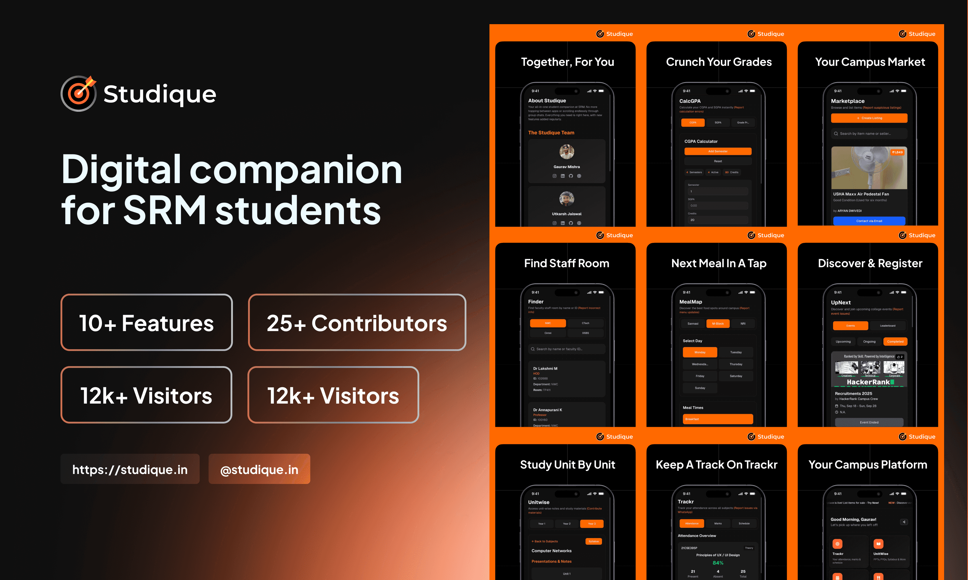 Built a live academic platform for SRM Students with 5k+ daily visitors